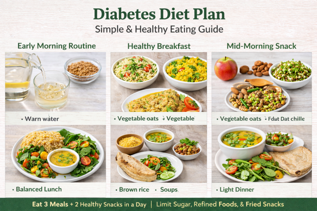 Diabetes Diet Plan: Simple & Healthy Eating Guide Description A healthy diet plays an important role in managing diabetes. Eating